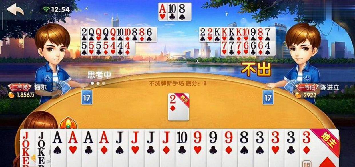 牌这玩意儿,转折来得快。第二局农民二把手运气好到爆,四个2四个1一对A还有飞机带小牌的组合。于超牌还凑合,出第一张就拆对子白送,农民反扑,王炸连炸三下,于超守不住,心理晃荡,额头出汗,手抖,1比1。